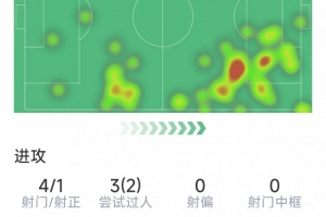 阿玛德本场数据:1粒进球,4射1正,1次关键传球,2次过人