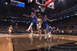 GIF-库里上篮被包夹撞飞 裁判没有表示