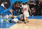 上半场比赛还剩4分多钟时,周琦被萨姆纳顶飞,随后撞到徐杰膝盖,后者脚踝也有受伤情况,倒地不起,担架车进场。随后,徐杰头盖毛巾,被队友背着离开球馆。