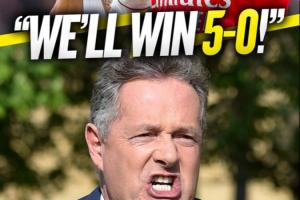 体育资讯11月23日讯 英超本轮迎来北伦敦德比,赛前,著名英国主持人皮尔斯·摩根接受talkSPORT电话采访,预测阿森纳将以5-0取胜。