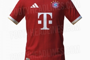 拜仁26-27赛季主场球衣谍照:传统红色基调+细条纹,搭配金色点缀